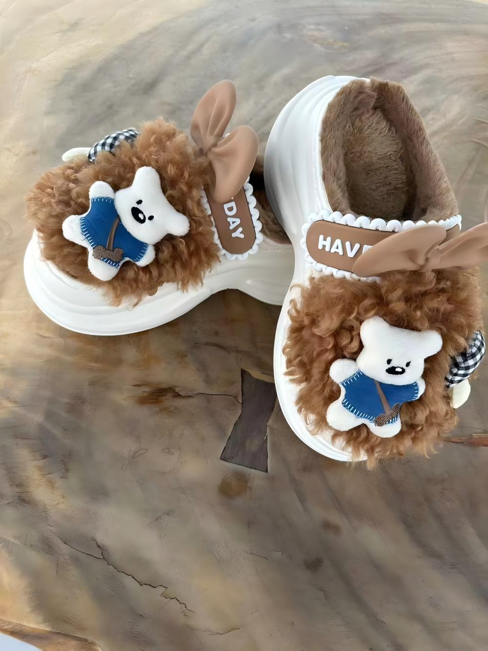 Many people think cotton slippers can only be worn at home, but these cute plush closed-toe cotton slippers break that limitation. At home, whether you're lounging in the living room watching TV, busy cooking in the kitchen, or relaxing in the bedroom, your feet will be comfortably enveloped in warmth. You no longer have to bother changing shoes just to take out the trash, pick up a package, or take a short stroll around the neighborhood. Its soles are thick enough, and it looks quite stylish and good-looking. You can put them on and walk straight away, easily handling those short jogs.